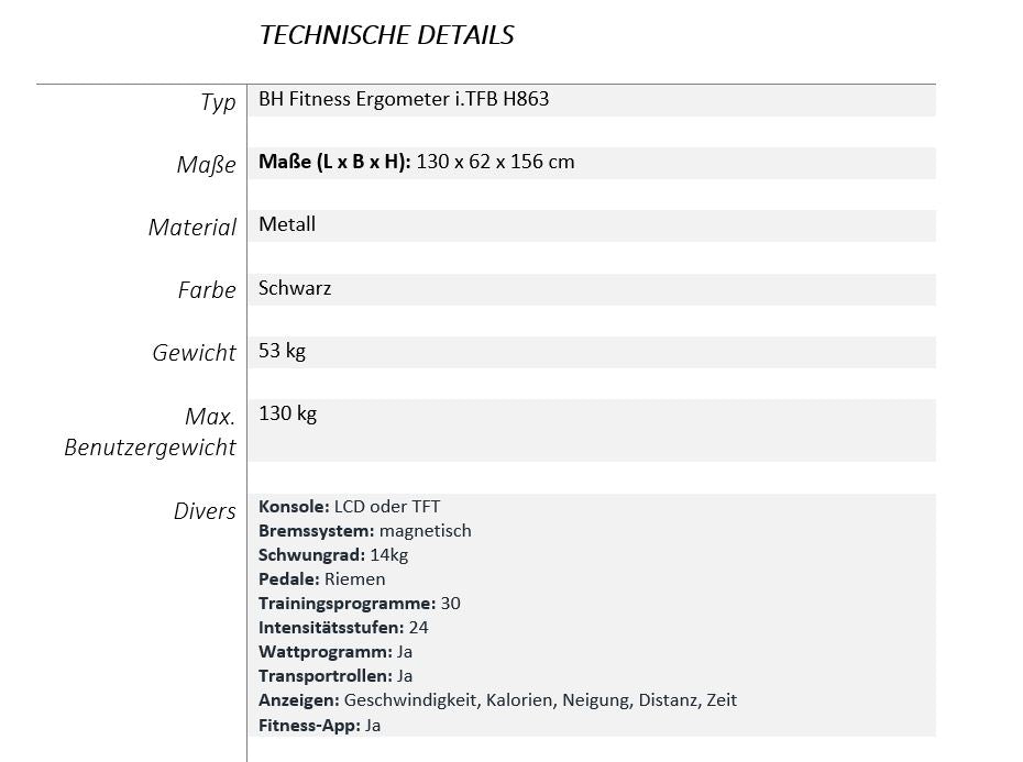 Der i.TFB H863 wurde für Hochleistungstraining entwickelt und verfügt über eine semiprofessionelle Garantie, die Haltbarkeit und die Fähigkeit gewährleistet, intensiven und längeren Sitzungen standzuhalten. Es verfügt über eine Bluetooth-FTMS-Konnektivität, sodass Sie es einfach mit Ihren bevorzugten Fitness-Apps synchronisieren können und so ein völlig personalisiertes und umfassendes Trainingserlebnis erhalten.