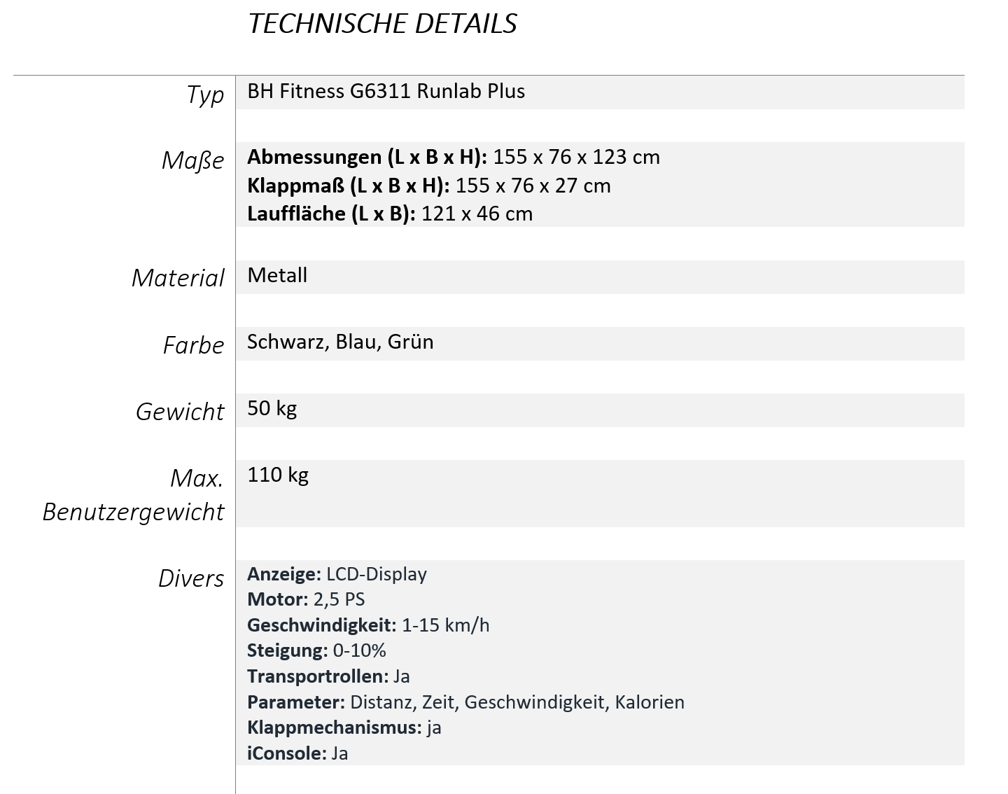 BH Fitness Laufband Runlab Plus G6311