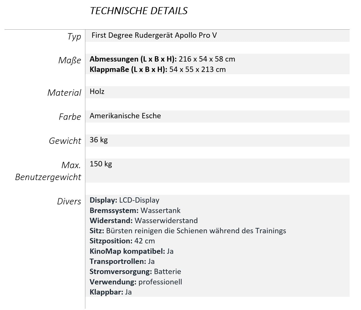 Entscheidest Du dich für das Rudergerät von Fluid Rower Apollo Pro V, kannst Du Dir ein professionelles Rudergerät mit Wasserwiderstand und einem stabilen Rahmen aus amerikanischem Eschenholz und Stahl erwarten.