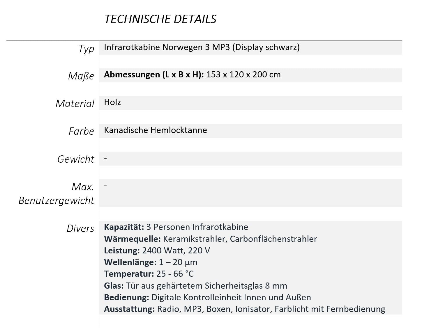 Infrarotkabine "Norwegen 3 MP3" (Display schwarz)