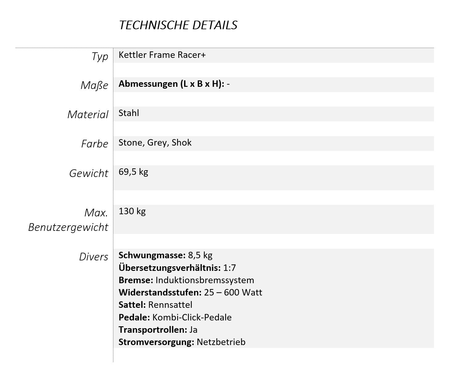 Einen Überblick über alle technischen Daten findest Du in den zusätzlichen Informationen.