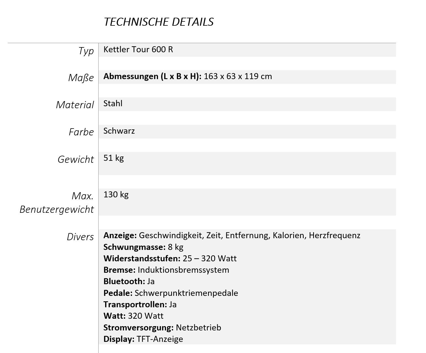 Den Widerstand kannst Du im Auto-MODUS unabhängig von Deiner Pedalfrequenz hochregeln – und das bis hinauf zu ausgesprochen sportlichen 320 Watt. Das Gerät in gewohnt stabiler Kettler- Markenausführung überzeugt mit vielen Standards aus der TOUR-Serie: eine Bluetooth-Schnittstelle, um Fitnessapps wie die Kinomap zu integrieren, Halterungen für Media-Geräte, komfortabler, verstellbarer Lenker.