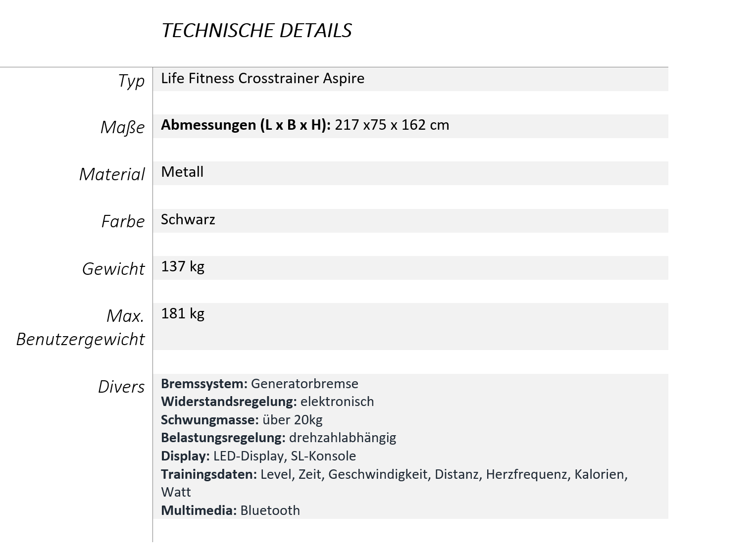 Als effizienter Allrounder bietet dieser Crosstrainer unterhaltsame und wirkungsvolle Workouts für unterschiedlichste Sportler. Das Design des Aspire Crosstrainers umfasst die fortschrittlichste Biomechanik und macht mit seiner Langlebigkeit dem Namen von Life Fitness alle Ehre.