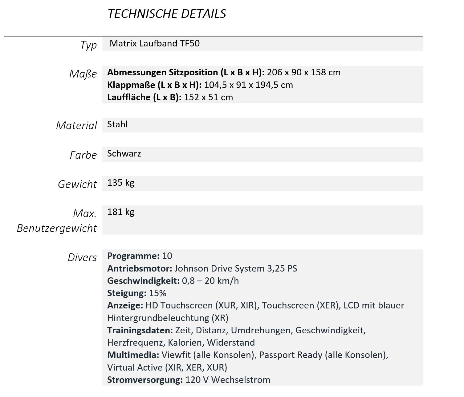 Matrix Laufband TF50 kompatibel mit unterschiedlichen Trainingssoftwaren