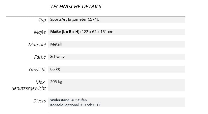 Die ECO-NATURAL™ Elite-Linie von SportsArt verkörpert Design, Technologie, Nachhaltigkeit und kardiovaskuläre Exzellenz. Das schlanke Design und die praktischen Funktionen verbinden sich mit einem Generator und bieten den Nutzern ein ansprechendes Workout. Der C574U Erghometer verfügt über ein flachprofiliges Abdeckungsdesign für den leichten Zugang, vertikal und horizontal verstellbaren Sitz und Fingerspitzenwiderstandsregler.