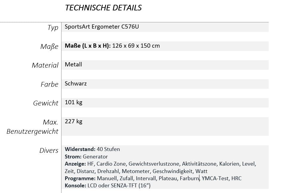 Die ECO-NATURAL™ Status-Linie von SportsArt verkörpert Design, Technologie, Mobilität und kardiovaskuläre Exzellenz. Das schlanke Design und Premium-Features verbinden sich mit einem Generator und dem optionalen SENZA-Touchscreen™ für das spannendste Training für Nutzer. Der C576U Ergometer verfügt über ein flachprofiliges Abdeckungsdesign für einfachen Zugang, vertikal und horizontal verstellbaren Sitz sowie mehrere Widerstandsverstellpunkte mit Fingertipp- und Kippreglern.