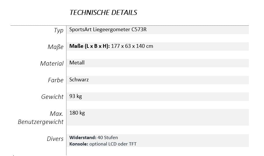 Die ECO-NATURAL™ Prime Line von SportsArt steht für Design, Qualität und Zuverlässigkeit. Das schlanke Design und die praktischen Funktionen sorgen für ein ansprechendes und energiesparendes Workout, bei dem sich die Nutzer freuen können. Der C573R Liegeergoeter verfügt über ein einfaches Step-Through-Design für einfachen Zugang und verstellbaren Sitz.
