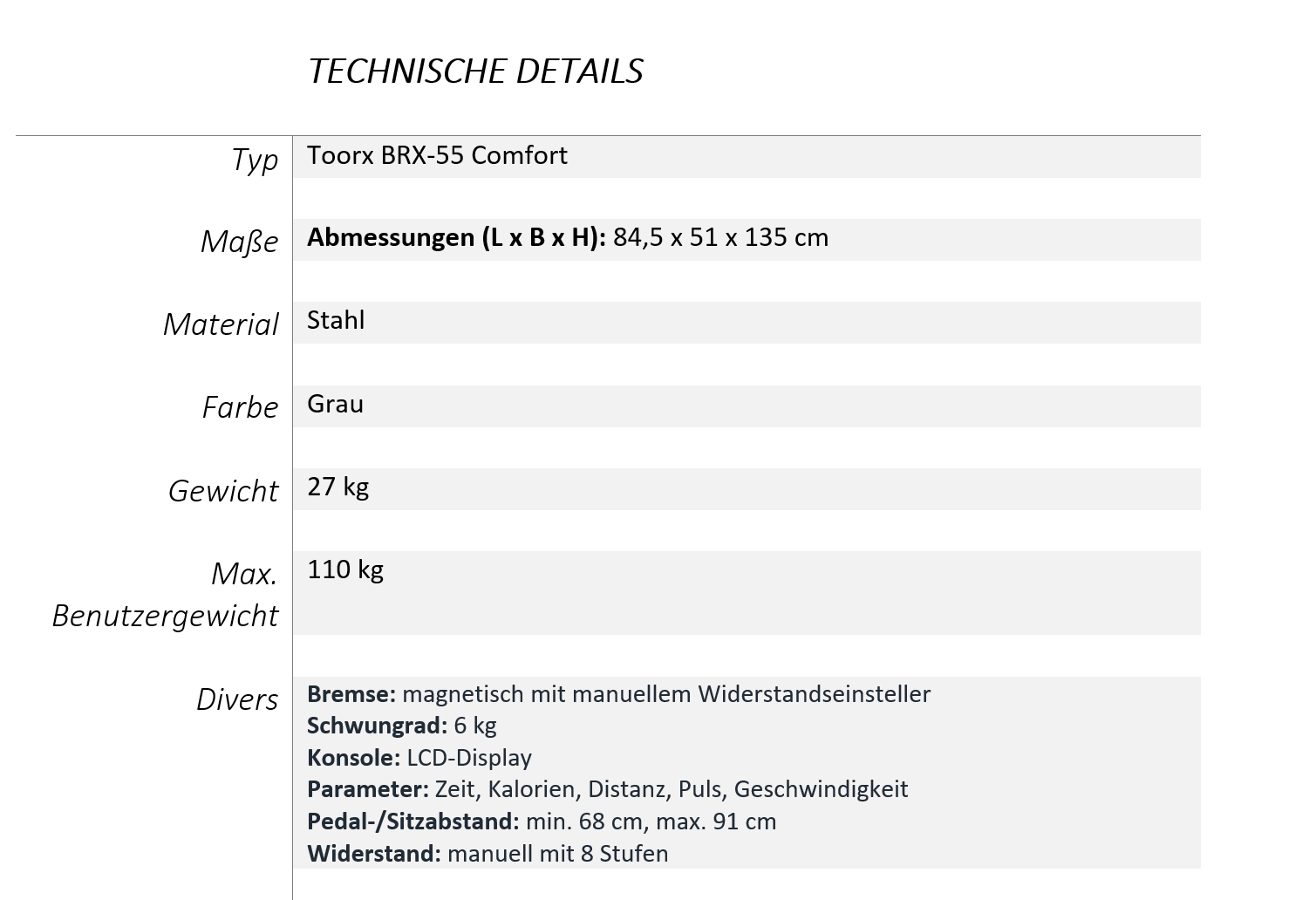 Der BRX 55 Comfort ist mit einem Schwungradgewicht von 6 kg ausgestattet, das ein sanftes und leises Treten ermöglicht.