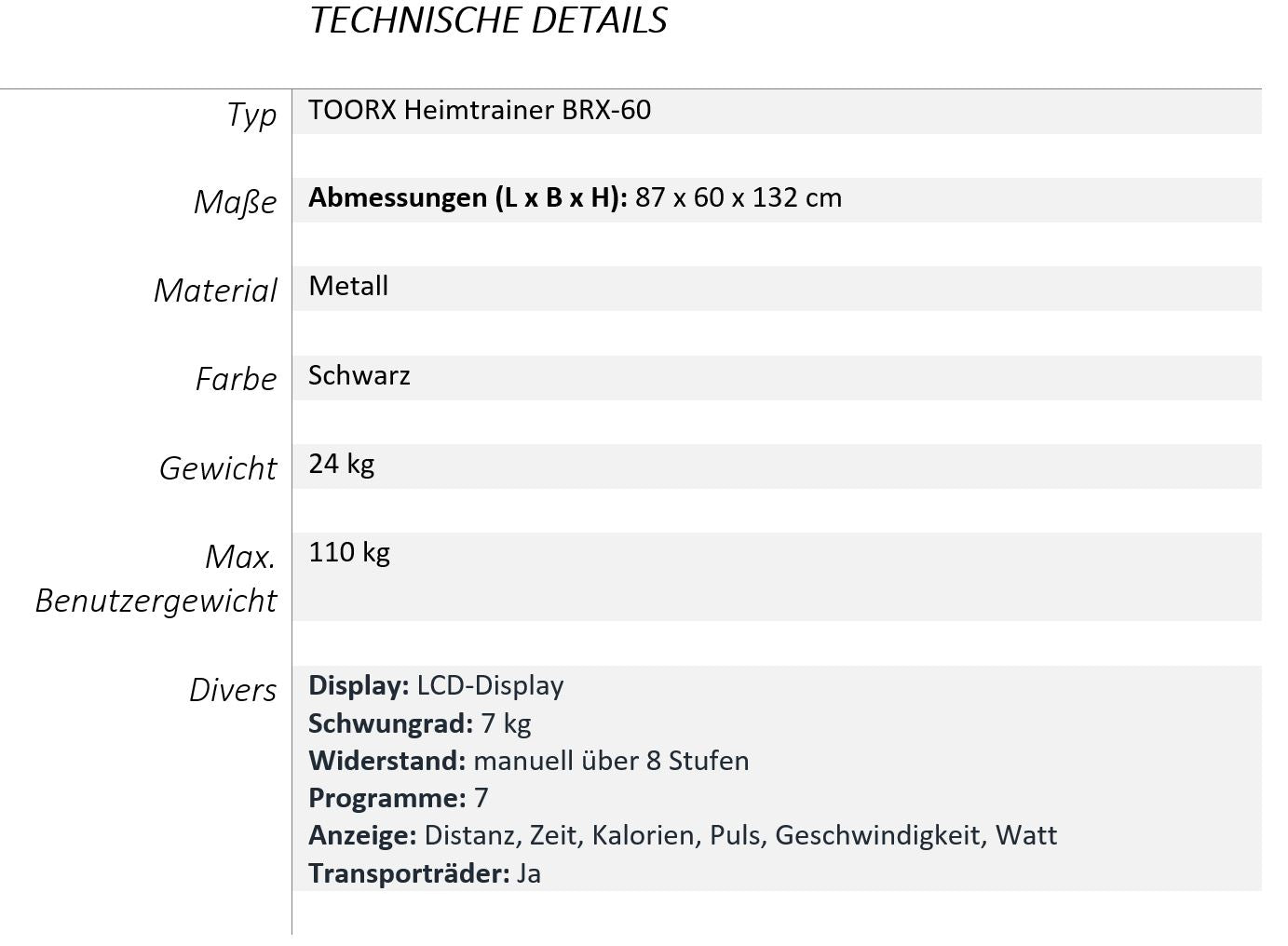 Der Heimtrainer TOORX BRX-60 unterscheidet sich von den anderen Modellen der Linie durch das Induktions-Ergometer-Bremssystem, die Schwungmasse liegt bei 7 kg, welche Dir eine einzigartige und sehr flüssige Bewegung bietet.