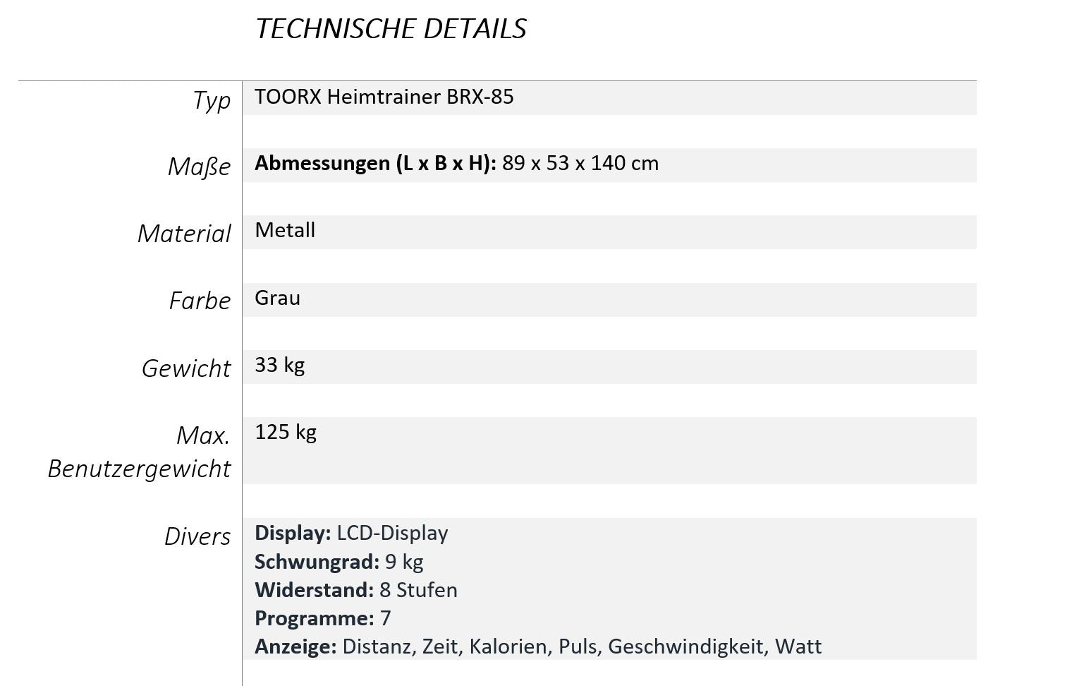 Der Heimtrainer BRX-85 von TOORX verfügt über ein manuelles Magnetbremssystem, das auf bis zu 8 Kraftstufen eingestellt werden kann.
