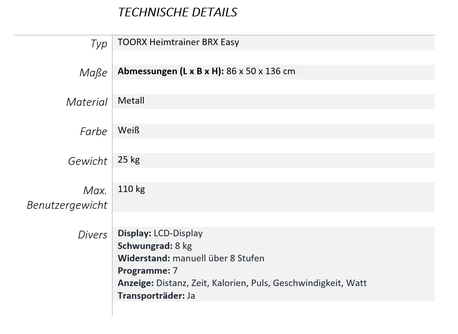 Der Heimtrainer BRX-75 Easy von TOORX verfügt über ein magnetisches Bremssystem mit 8-stufiger manueller Krafteinstellung und ein 8-kg-Schwungrad.