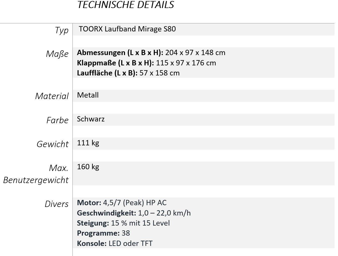 TOORX Laufband Mirage S80 HRC (App ready)
