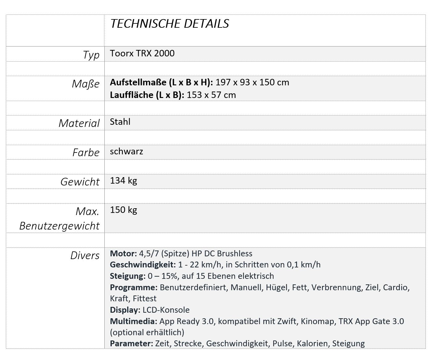 Gewichtskapazität: Mit einer maximalen Einsatzkapazität von 150 kg ist der TRX-2000 für eine Vielzahl von Anwendern geeignet.